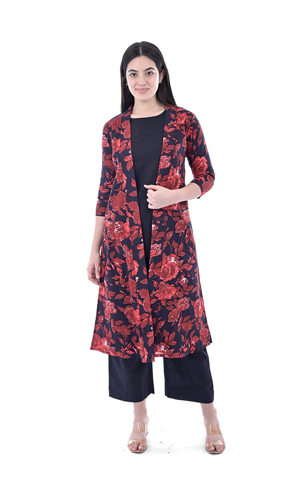 Wine & Navy Blue Floral Printed Pure Cotton Jacket For Women & Girls
