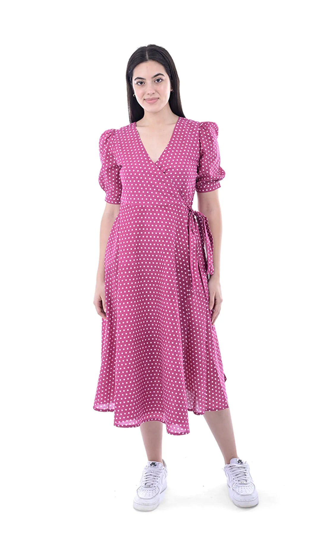 Pink Fit & Flare Dress For Women — Polka Dot Pure Cotton