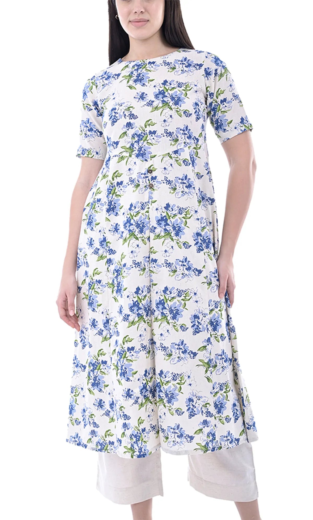 Step into effortless style with the Beige Floral Printed Cotton Flax A‑Line Dress from CODE ROSE — a perfect blend of comfort, breathability, and everyday elegance. Crafted from premium natural cotton, this dress features an eye‑catching floral print on a soft beige base and a flattering A‑line silhouette that drapes gracefully. Its lightweight and breathable fabric makes it ideal for casual outings, daytime events, parties, festive occasions, and everyday wear. Designed to provide both comfort and sophistication, this dress pairs beautifully with sandals or flats and light accessories for a chic look that transitions seamlessly from day to night.
