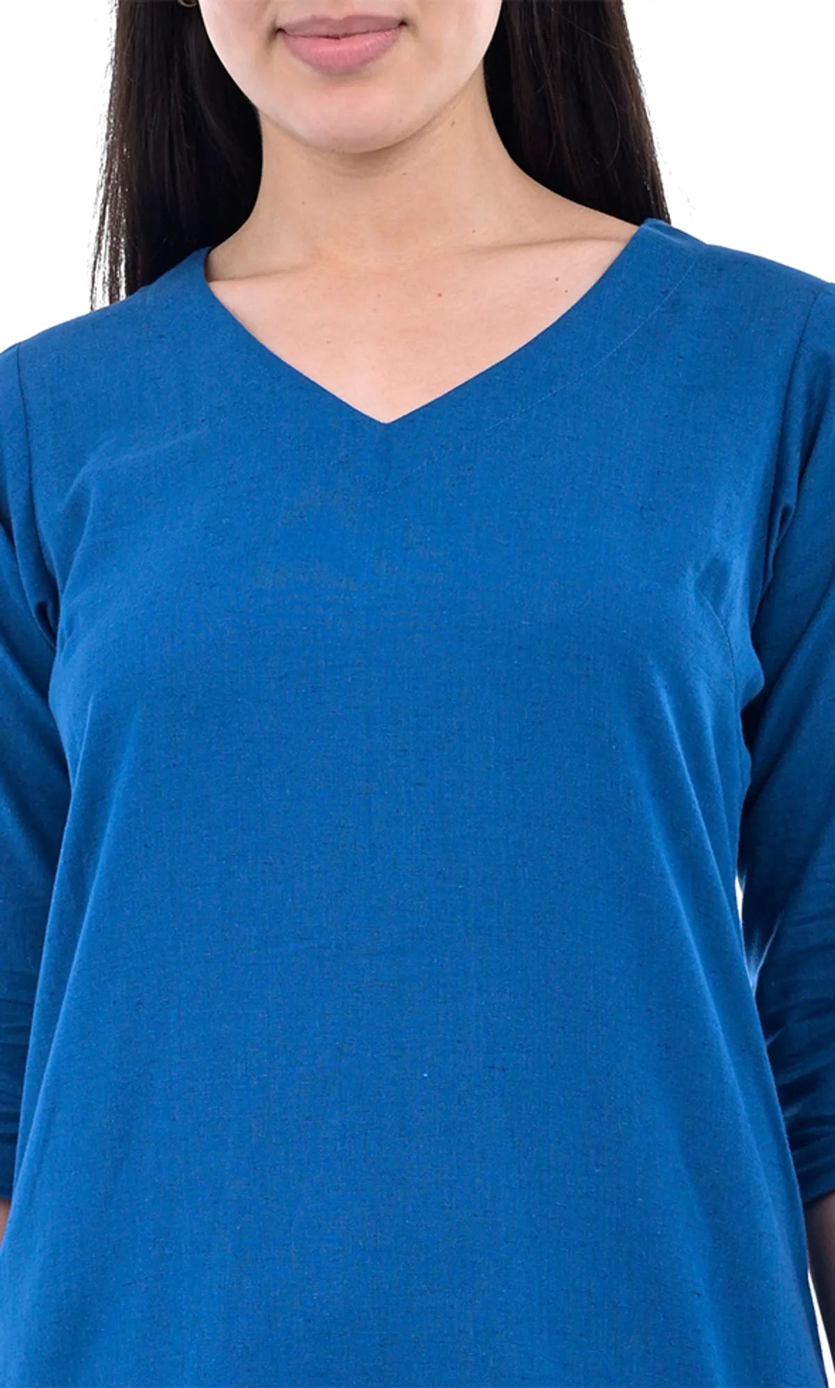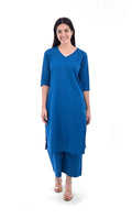 Blue Solid Khadi Cotton A-Line Kurta and Pant Set For Women & Girls