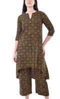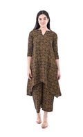 Brown Abstract Print Pure Hand Block Cotton A-Line Kurta Pant Set For Women & Girls