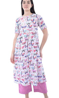 Butterfly Print Kurta With Pink Palazzo For Women & Girls — Perfect Blend of Comfort & Style