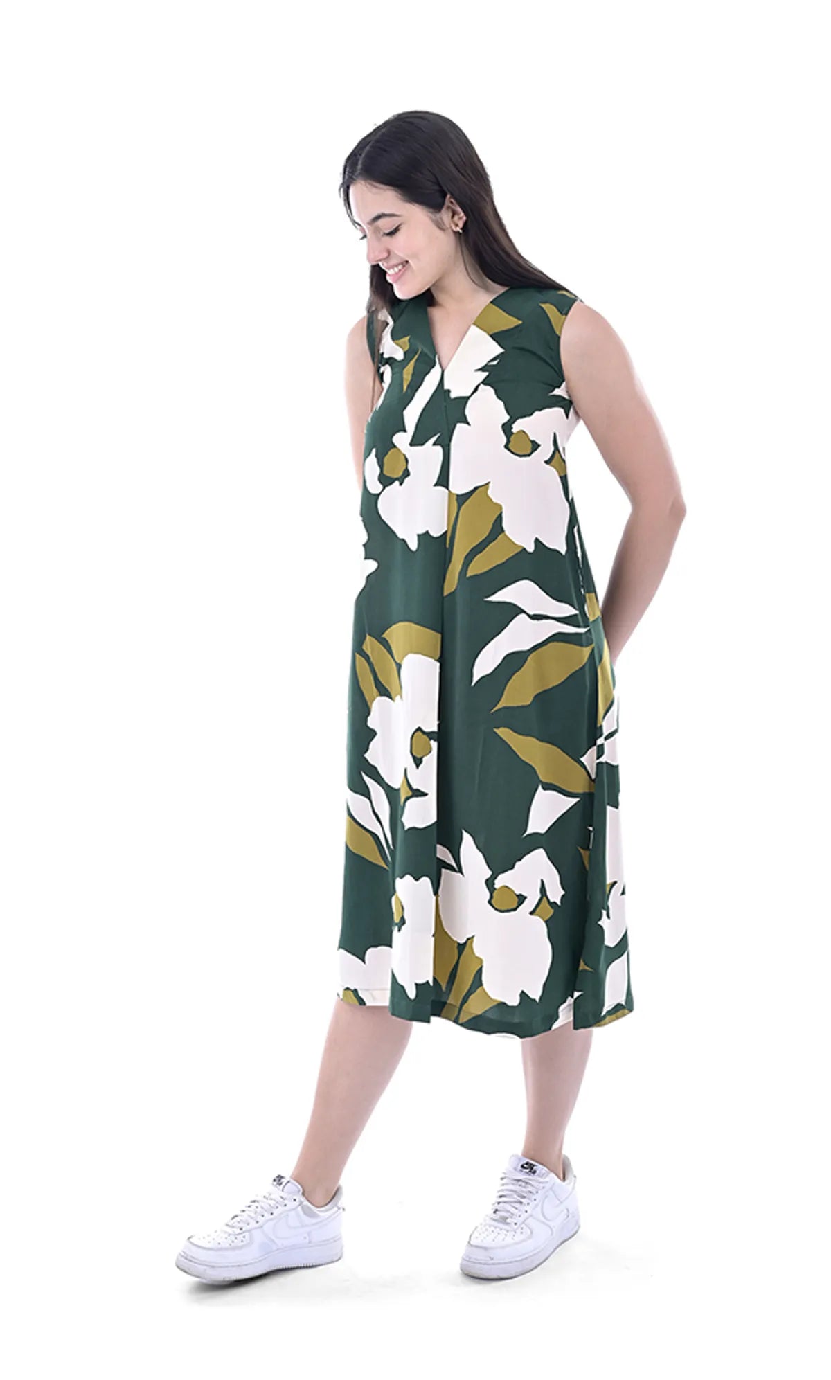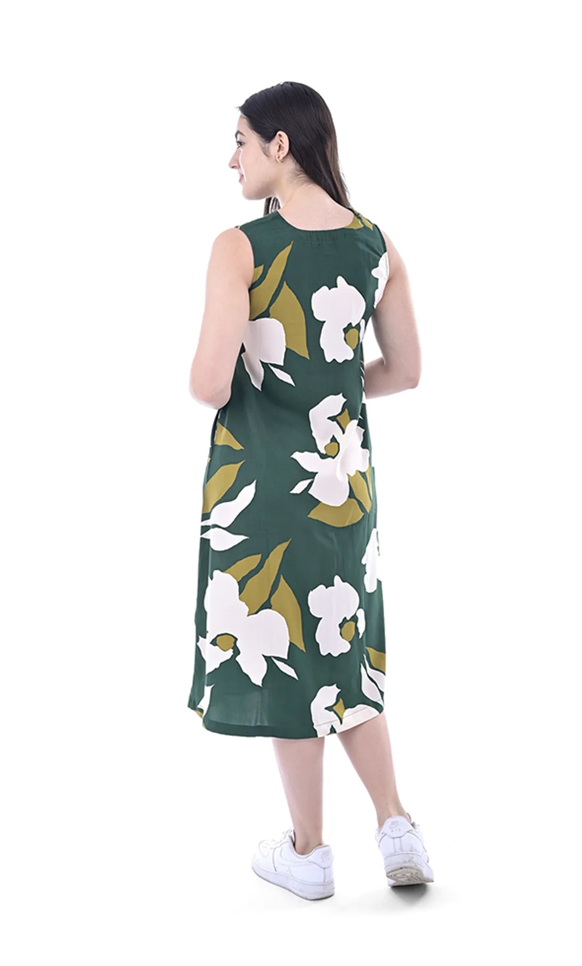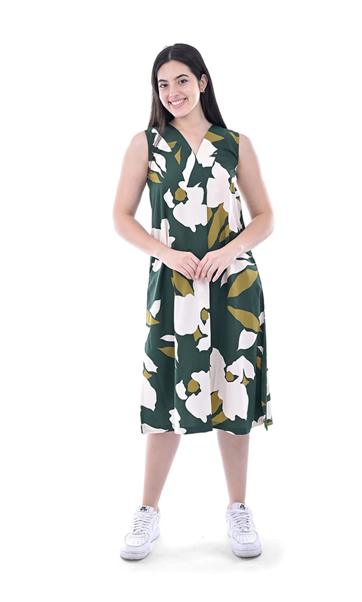 Green Straight Dress For Women – Floral Printed Crepe Design