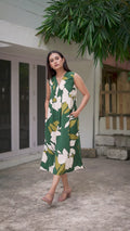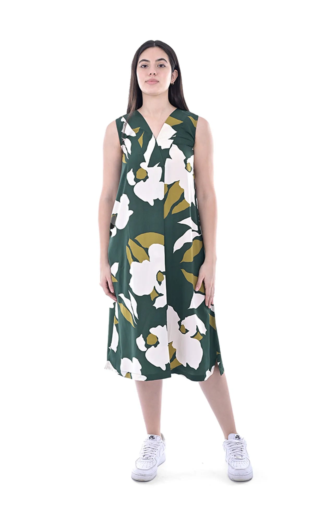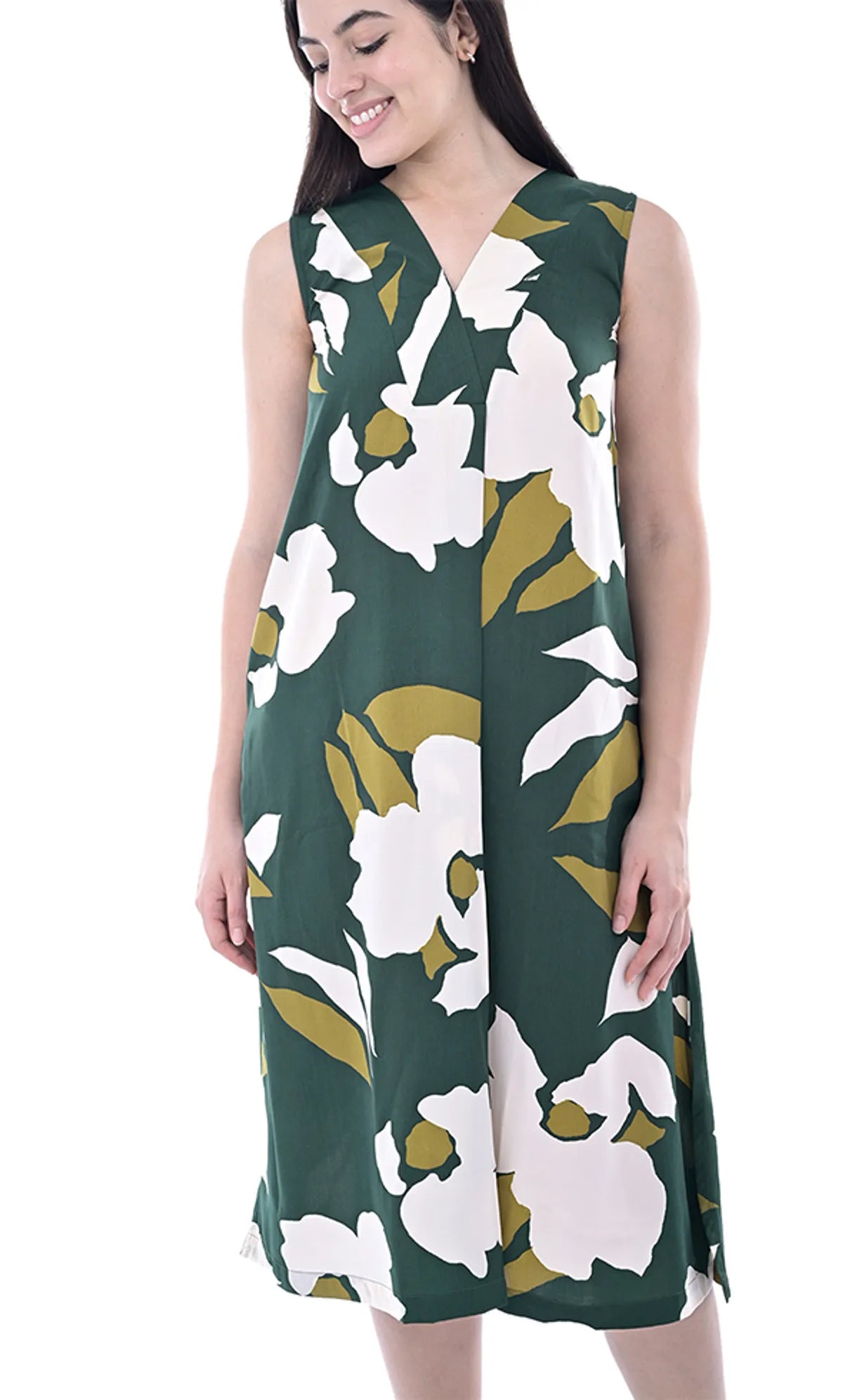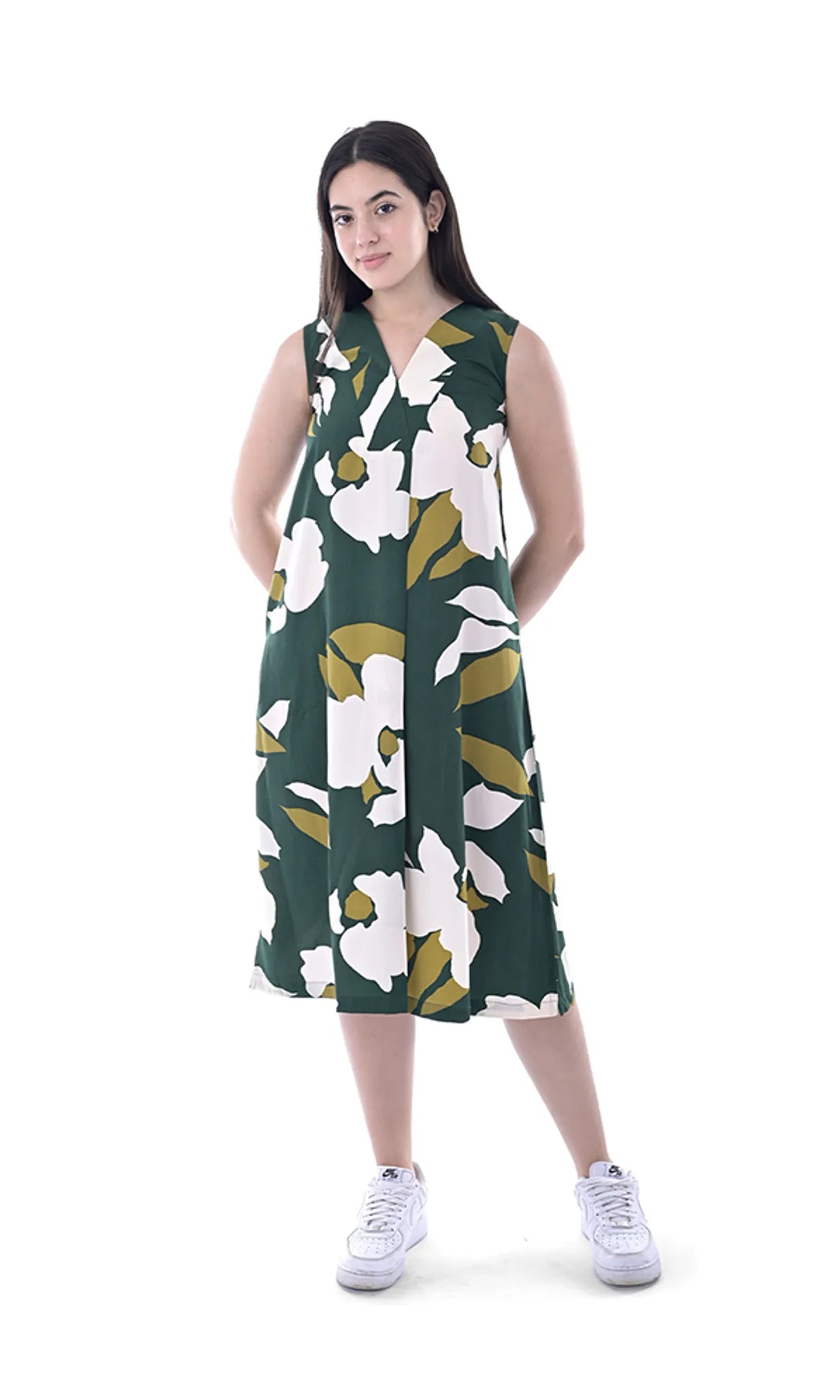 Green Straight Dress For Women – Floral Printed Crepe Design