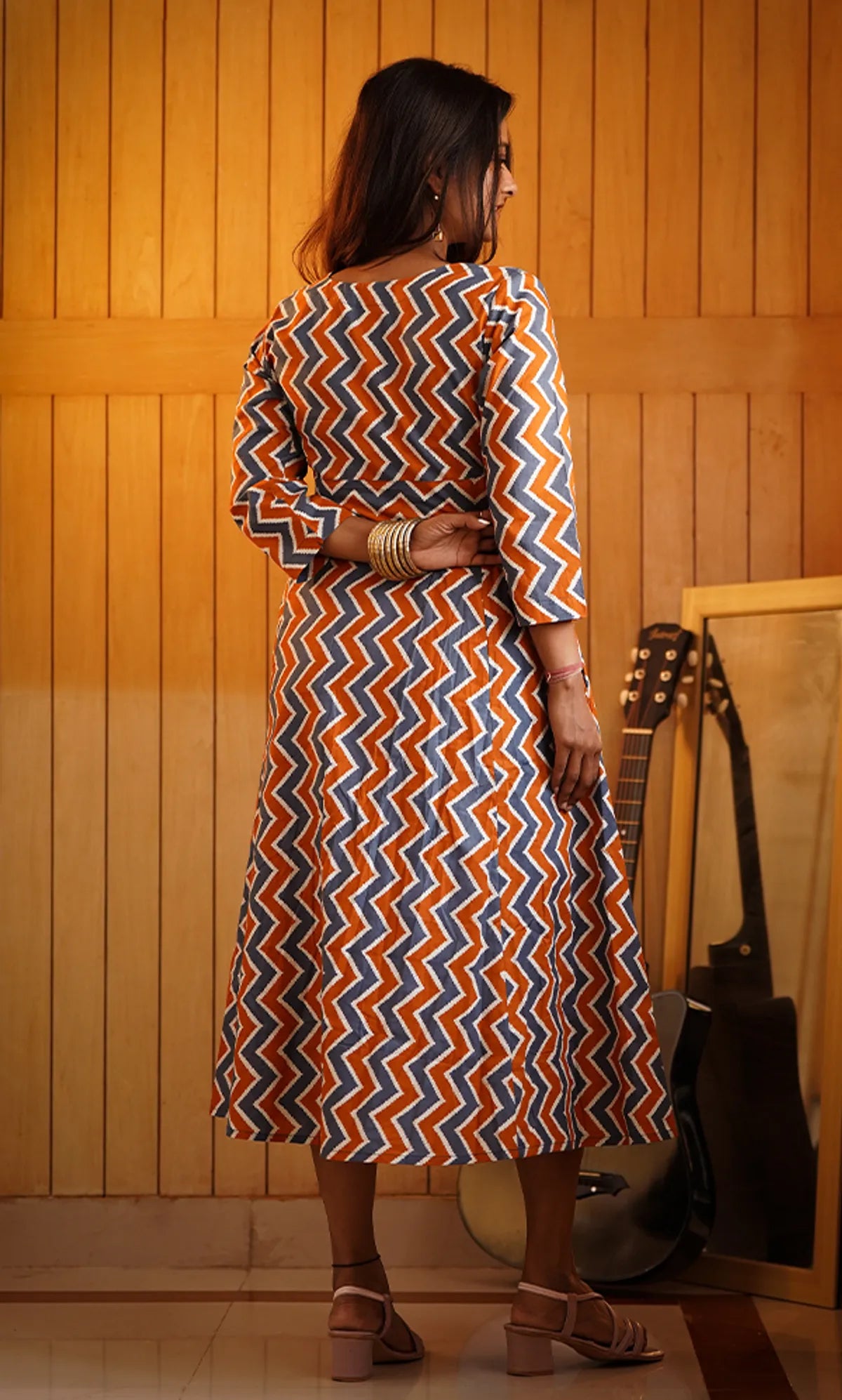 Orange Zig‑Zag Printed Dress For Women — Perfect Blend Of Comfort & Style