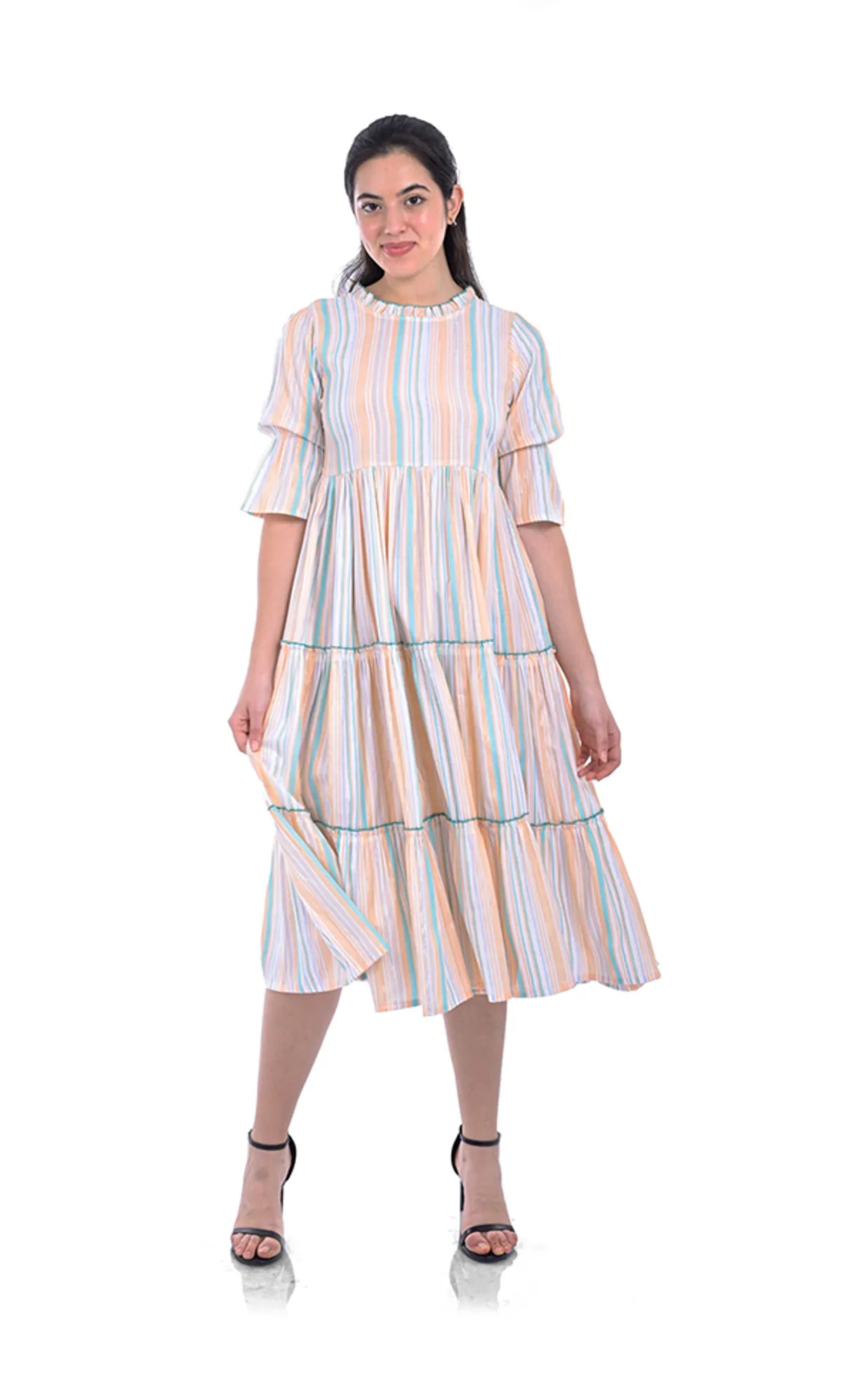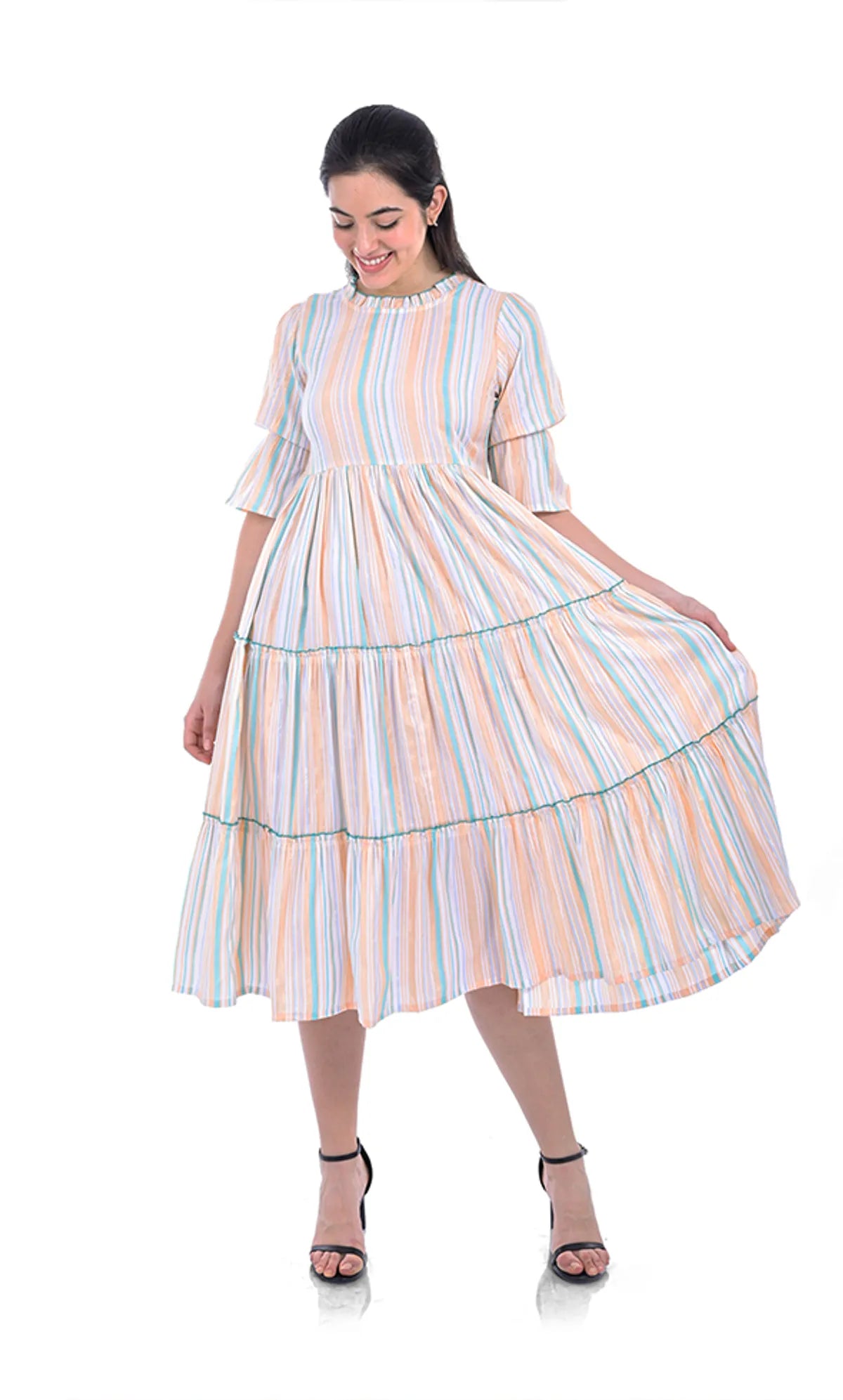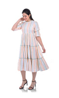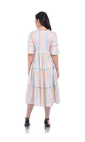 White Stripes Viscose Fit & Flared Dress For Women & Girls