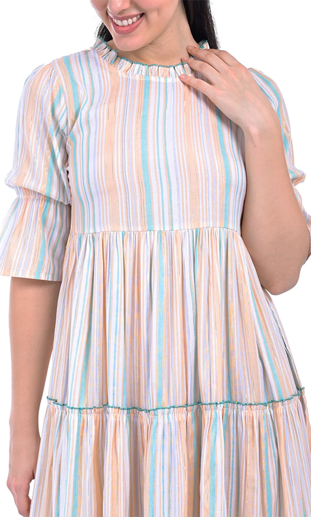 Refresh your wardrobe with this White Stripes Viscose Fit & Flared Dress from CODE ROSE. Featuring classic white with subtle stripes, this dress blends contemporary style with everyday comfort. Crafted from high‑quality viscose cotton blend, it’s soft, breathable, and ideal for casual outings, daytime events, brunches, or everyday wear. The flattering fit & flared silhouette accentuates the waist while allowing graceful movement at the skirt, making it a versatile choice for your day‑to‑night wardrobe.